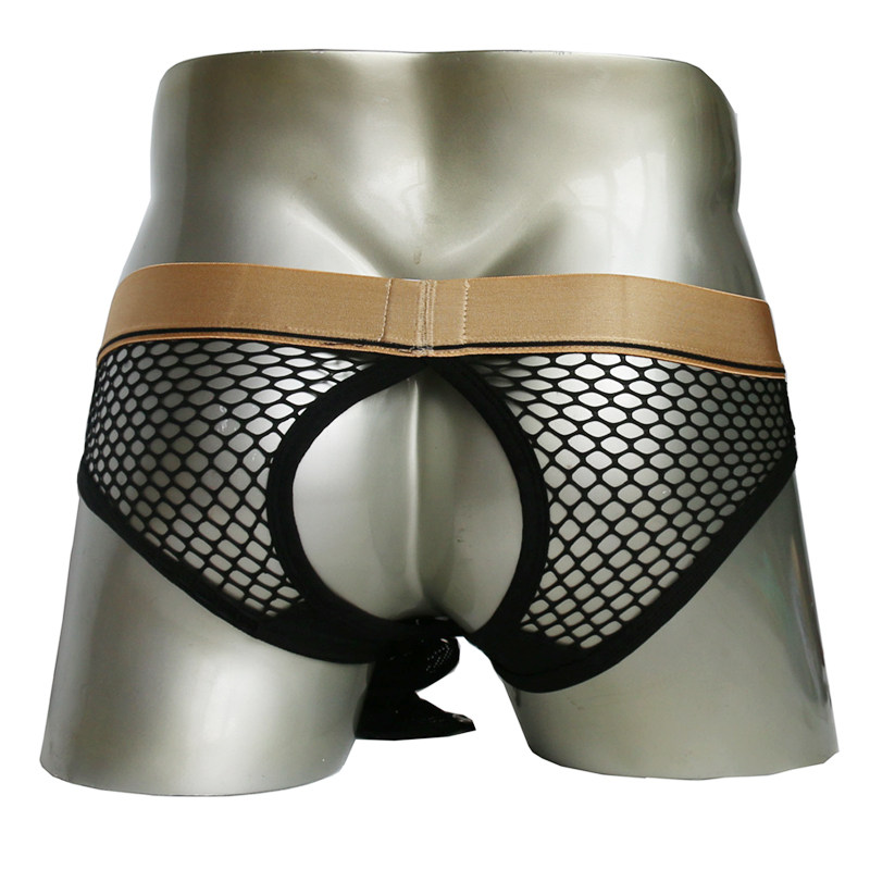 Men's big net sexy sexy triangle underwear front and rear open crotch free to reveal buttocks exposed pants transparent crotch show