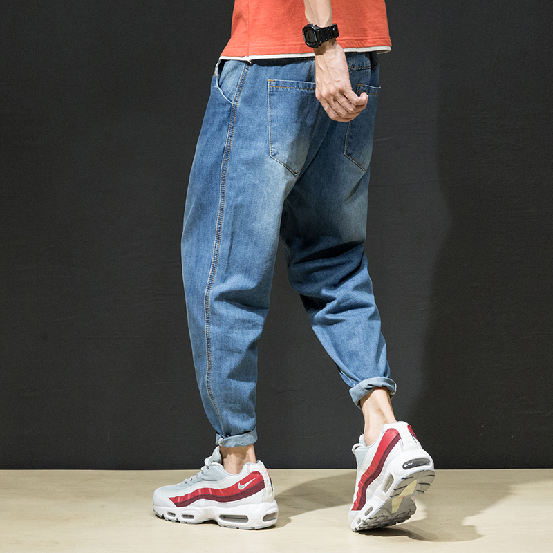 2021 summer new casual sports nine-point jeans men's loose large size harem pants Korean version of trendy men's pants