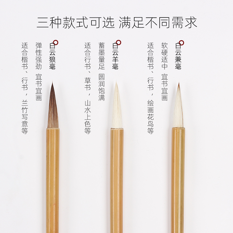 Brush wolf hair and hair big white cloud medium regular small regular sheep hair beginner student entry brush set calligraphy French painting fine brush coloring special primary school students adult regular script running script small white cloud brush