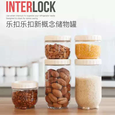 Lock sealing tank Solid color plastic kitchen five grains Korean creative white cover blue cover storage tank INL301