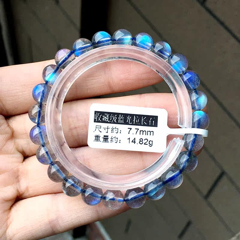 Lin Guofu Collection Grade 7A Natural Labradorite Hand Bracelet Blue Gray Bracelet Crystal Sleeping Multi-circle Buddha Beads