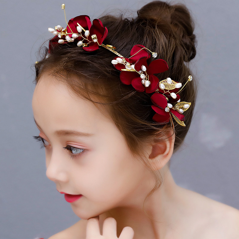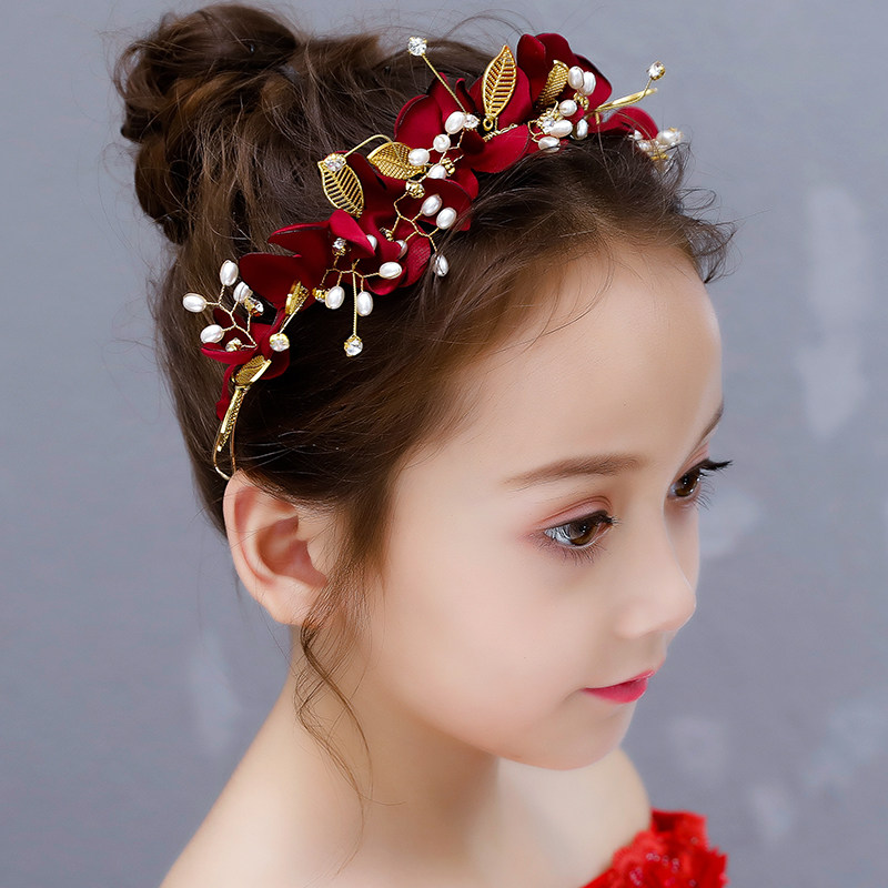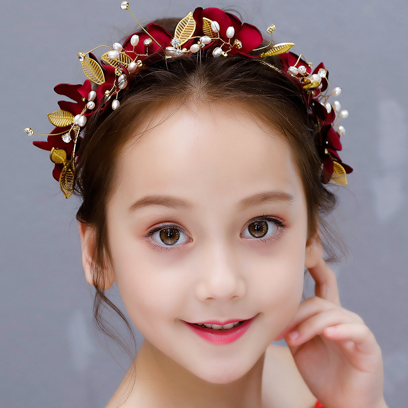 Red children and girls crown flower headdress child princess headband Chinese style performance Hanfu baby hair accessories female ancient style
