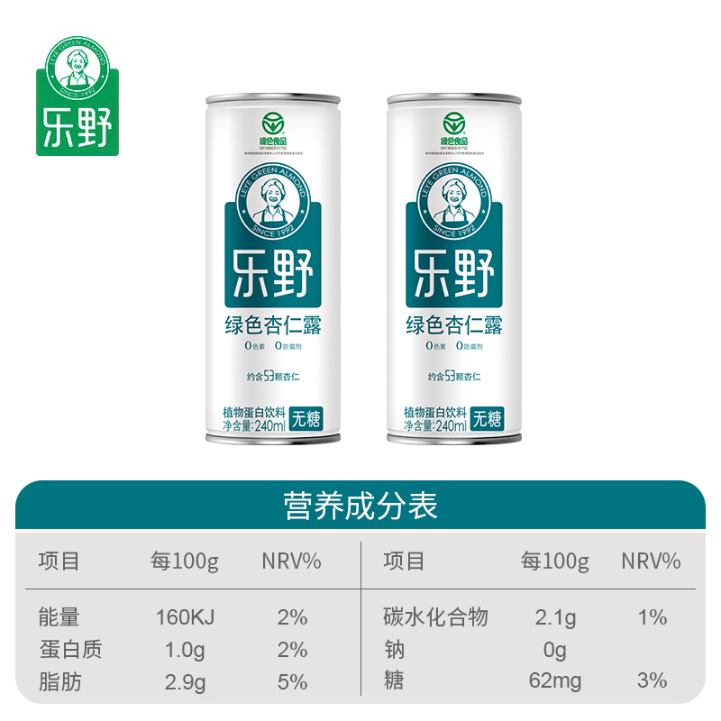 Leye Green sugar-free almond dew Chengde specialty plant protein drink Breakfast drink 240ml*24 cans FCL