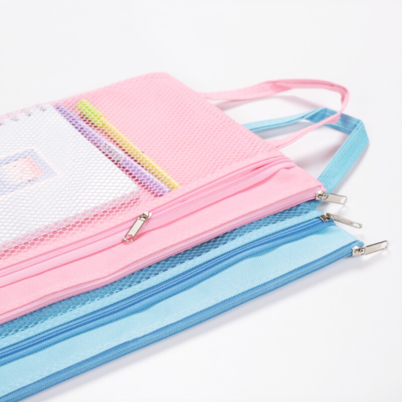 A4 Double-layer grid hand-tip bag Korean Xiaoxing students used test papers and inspection bags Waterproof transparent multilayer canvas package thickness collection bag customized printing LOGO