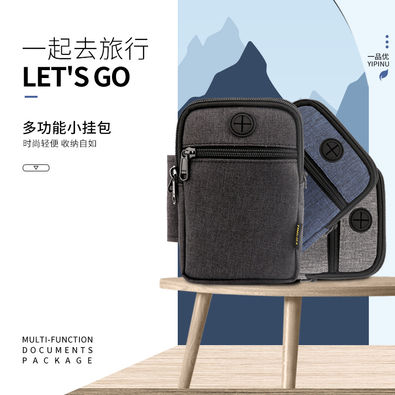 Multifunctional single shoulder mobile phone bag male youth ID cigarette waist bag anti-theft waist bag pen bag hanging bag oblique backpack