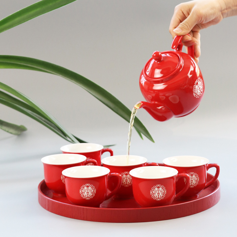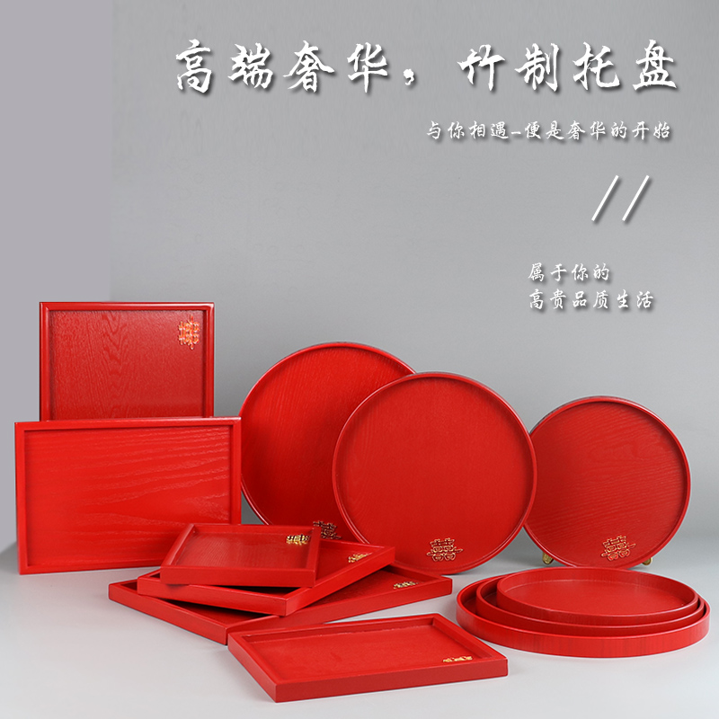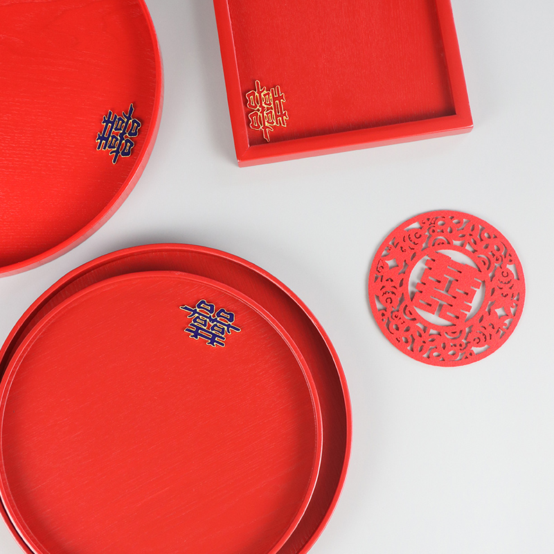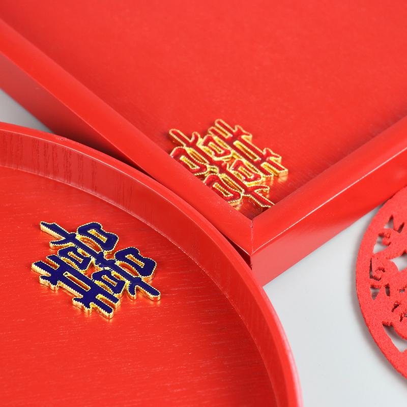 My tour wooden tray red wedding Round Square respecting tea tray toast plate festive wedding candy plate fruit plate