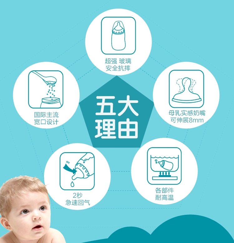 Baosheng baby glass bottle wide mouth diameter explosion-proof with straw handle Newborn baby insulation stainless steel water cup