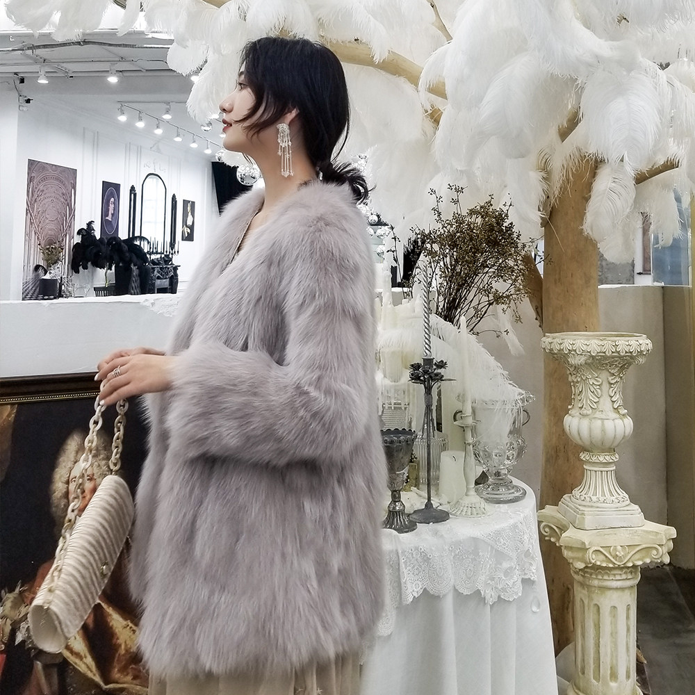 Millions of years Classic However, imported fox fur abs 100 hitch skinny fur coat medium long version V collar coat woman