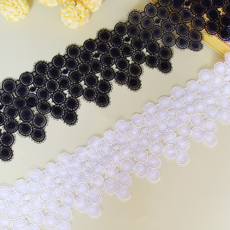 Black and white polyester silk thread embroidery water-soluble lace accessories diy clothing skirt fabric decorative lace material