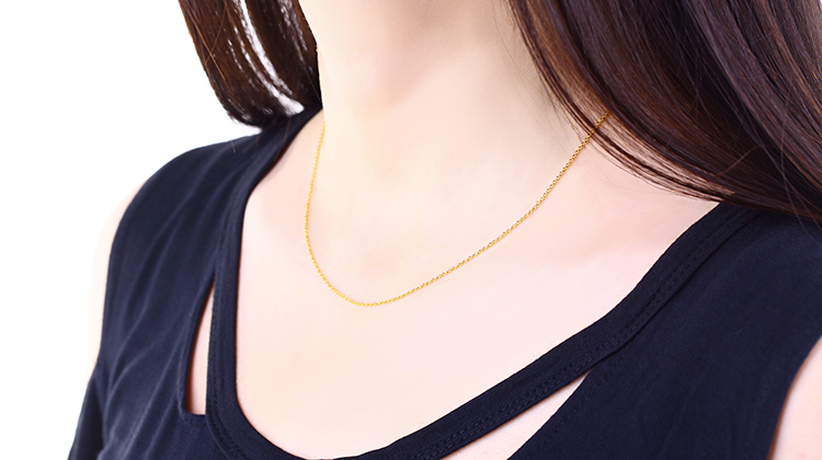 Gold necklace female 999 pure gold o-word chain fine gold chain clavicle chain wild plain chain birthday gift for girlfriend