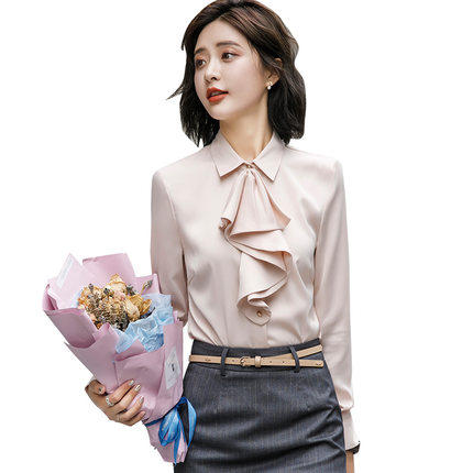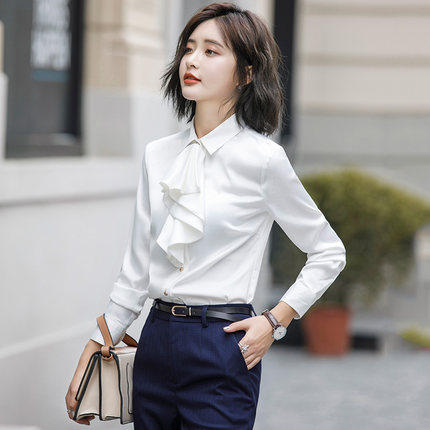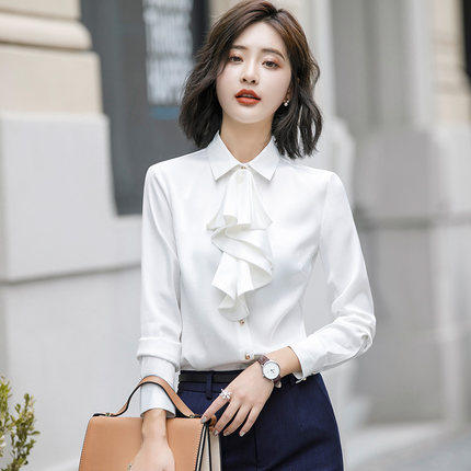 Professional suit blouse women long sleeves spring 2018 new autumn chiffon white shirt summer fashion temperament plus velvet jacket