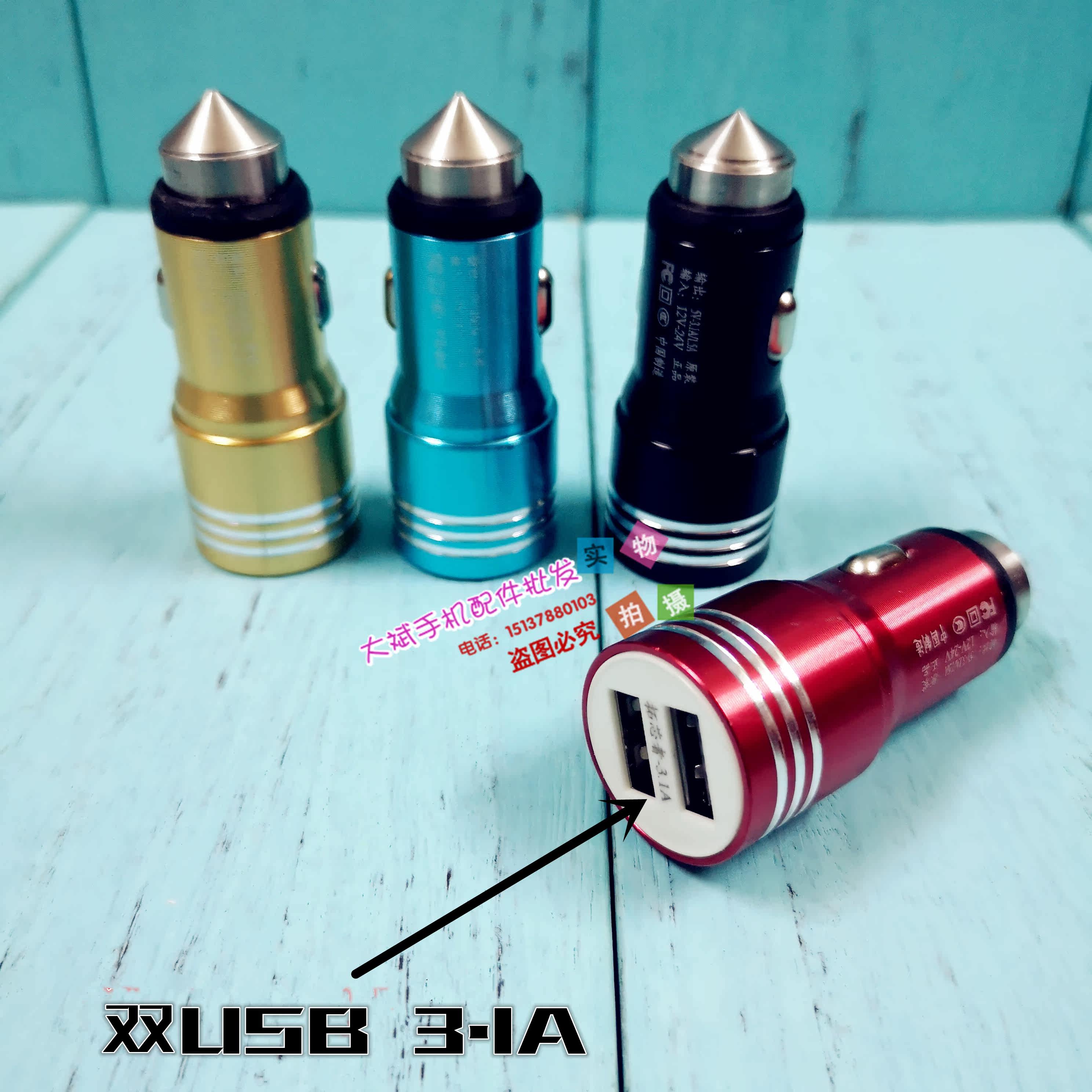 Safety hammer on-board charger plug-in car cigarette lighter double usb 3 1A metal phone General Motors charging head wholesale