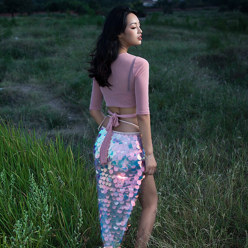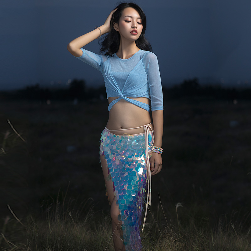 Magnificent Solo Show Belly Dance Exercises 2021 Summer New Hip Towel Bright Sheet Fish Tail Dresses Belly Dance Performance Wear
