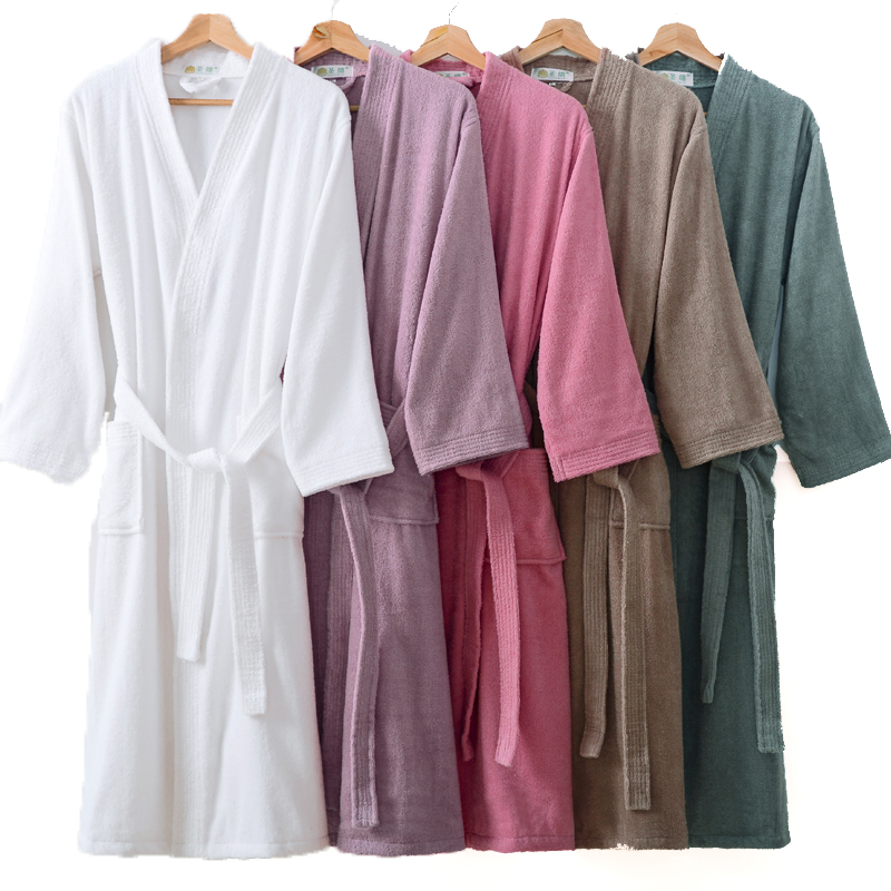 Five-star hotel bathrobe cotton towel material autumn and winter women's long version absorbent quick-drying nightgown men's cotton bathrobe