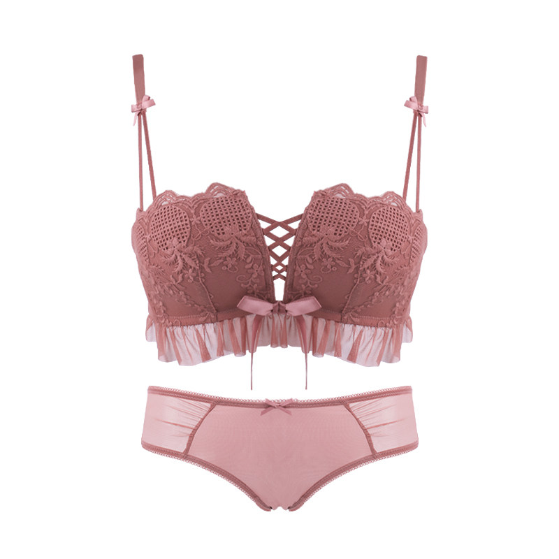 Sexy underwear women's small breasts gather breast bra no steel ring to pull back milk anti-sagging on lace bra set