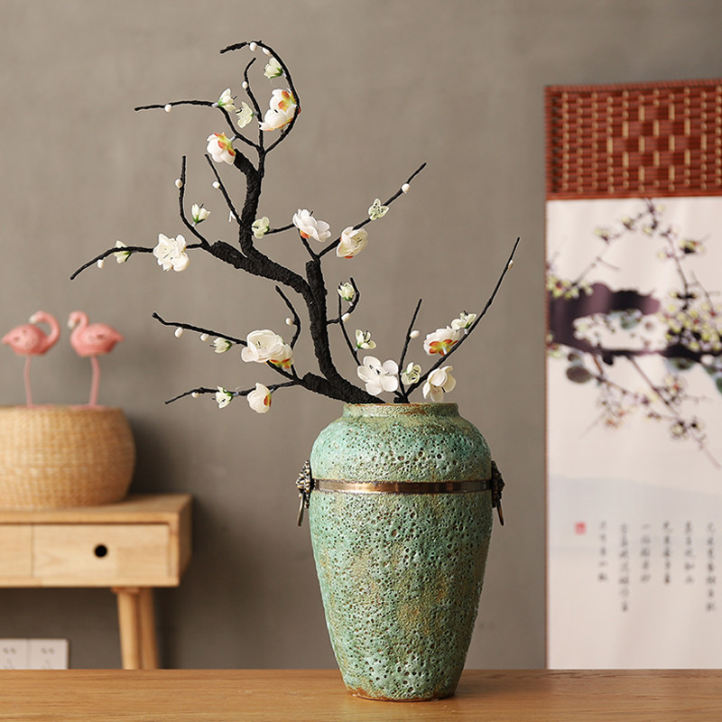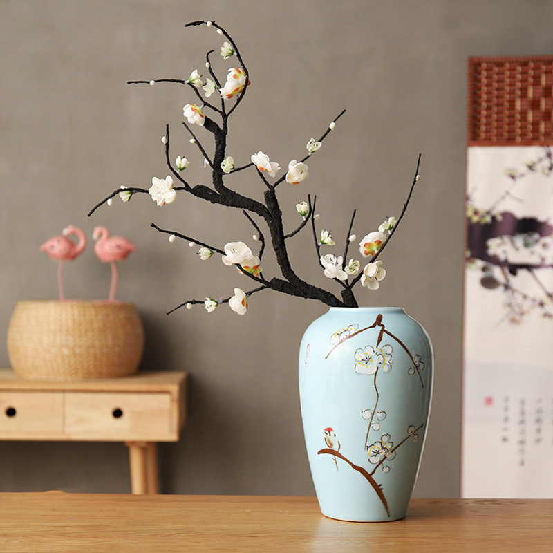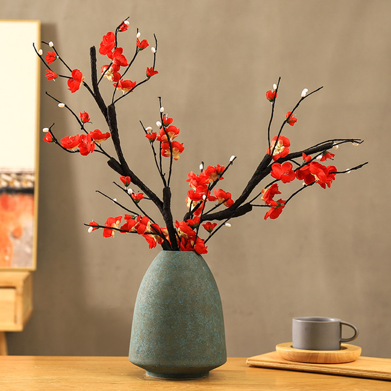 Emulated plum blossom peach blossom tree preserved plum fake floral silk flower TV cabinet Living room Chinese style Zen Serve ceramic vase to put floral art