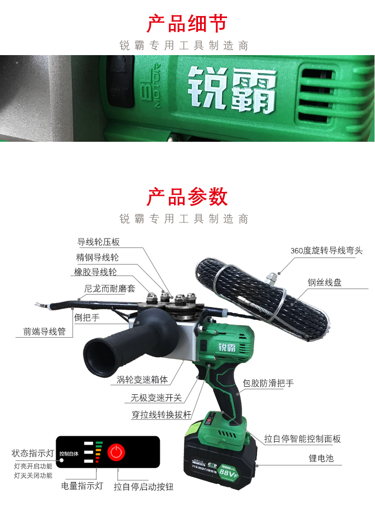 Ruiba Electrician Lithium Battery Threading Machine Lead Device Threading Artifact Charging Fully Automatic Wire Pulling Electric Threading Device