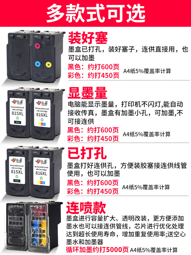 815 black ink cartridge (no ink can not be supplied) 816 color ink cartridge (no ink can not be supplied) Large capacity 815XL black ink cartridge(perforated plug can be supplied