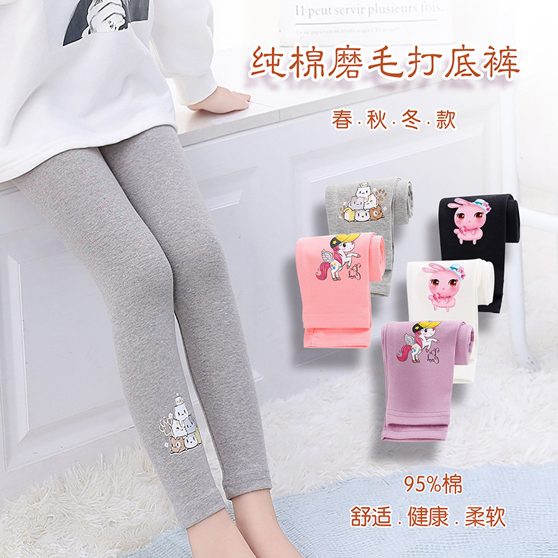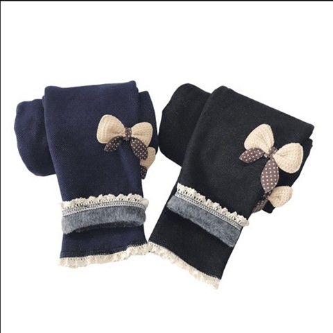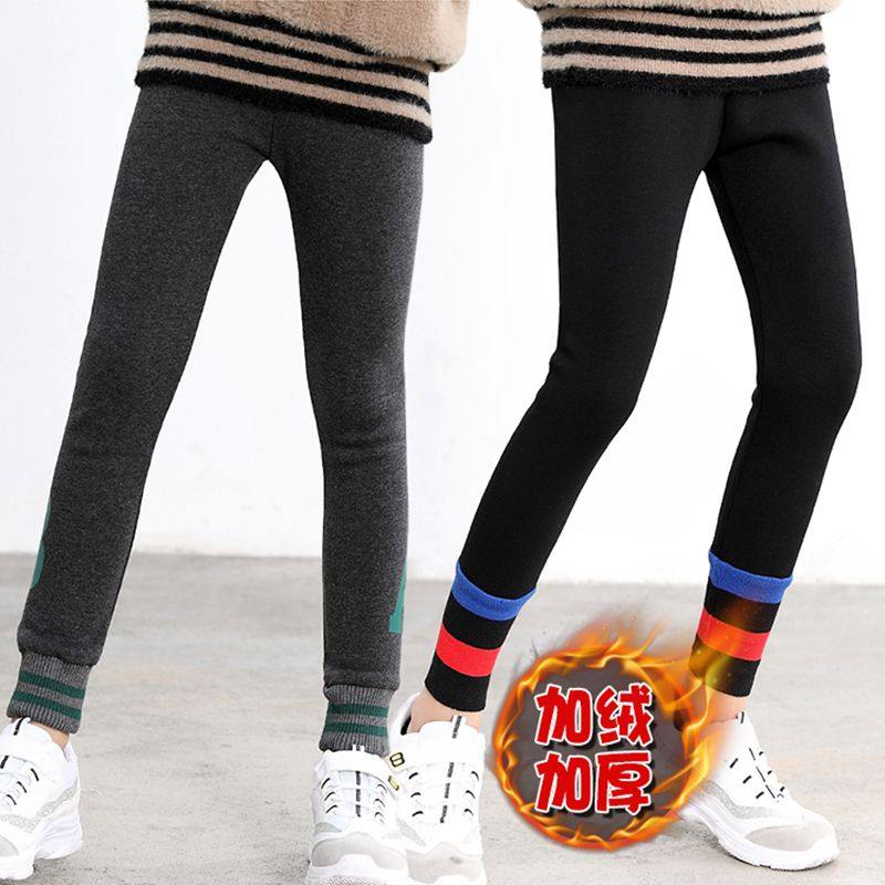 Girls' inner pants spring autumn winter children's outer wear imitation denim warm trousers girls plus velvet plus velvet high waist slim trousers