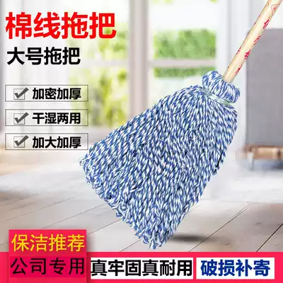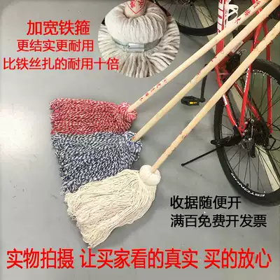 Round wood pole mop cotton thread absorbent wide mop row mop strip vintage wood mop property factory school thickened