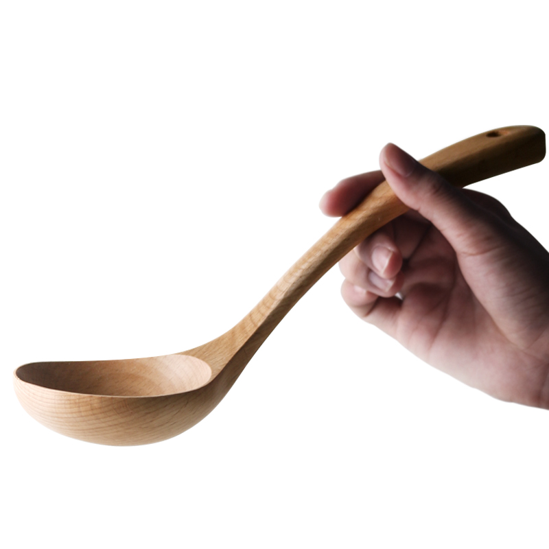 Day-style handmade wooden large soup spoon Creative wood spoon Home log pure colour long handle Porridge Spoon without dipping into the pan