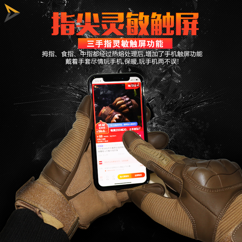 Outdoor military fan tactical gloves Male full finger special forces anti-cut touch screen Combat fighting self-defense motorcycle gloves half finger