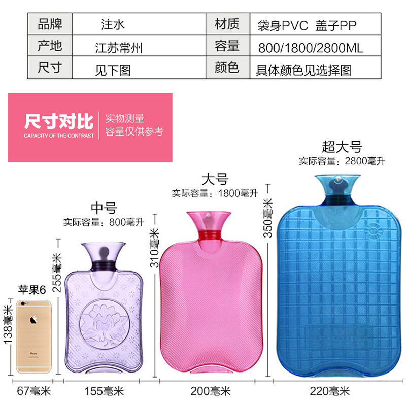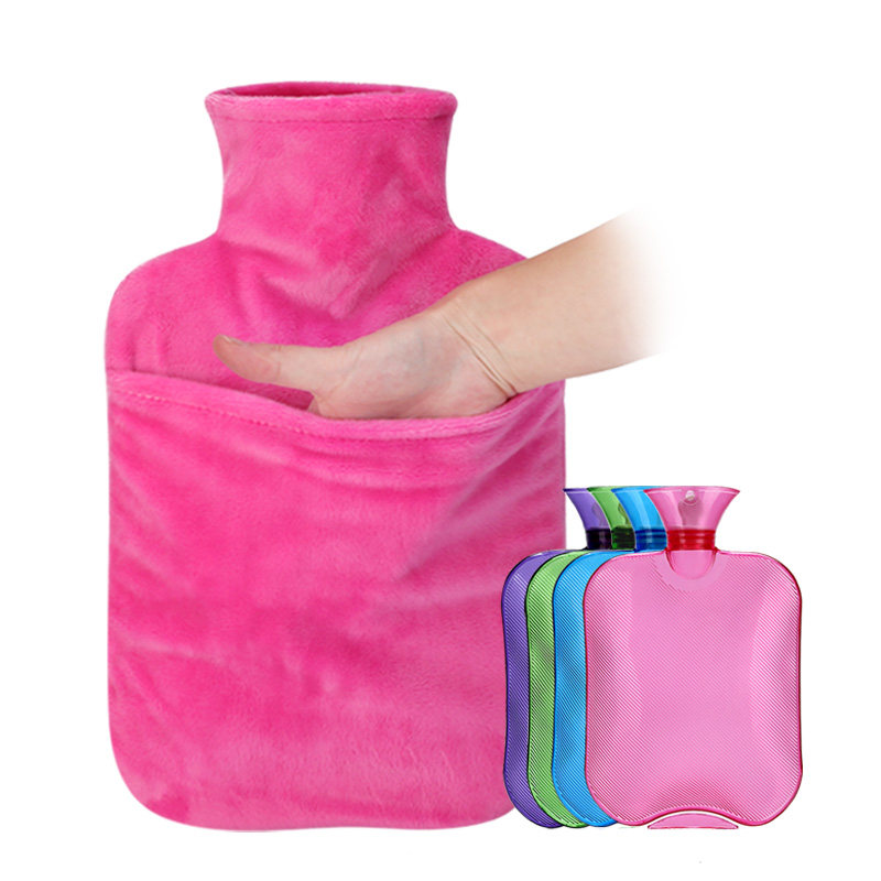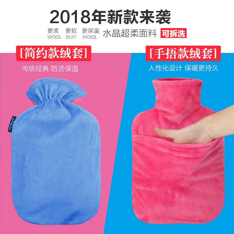 PVC explosion-proof water injection hot water bag irrigation water warm hand Bao Nuan Palace cute student transparent plush sleeve small warm water bag female