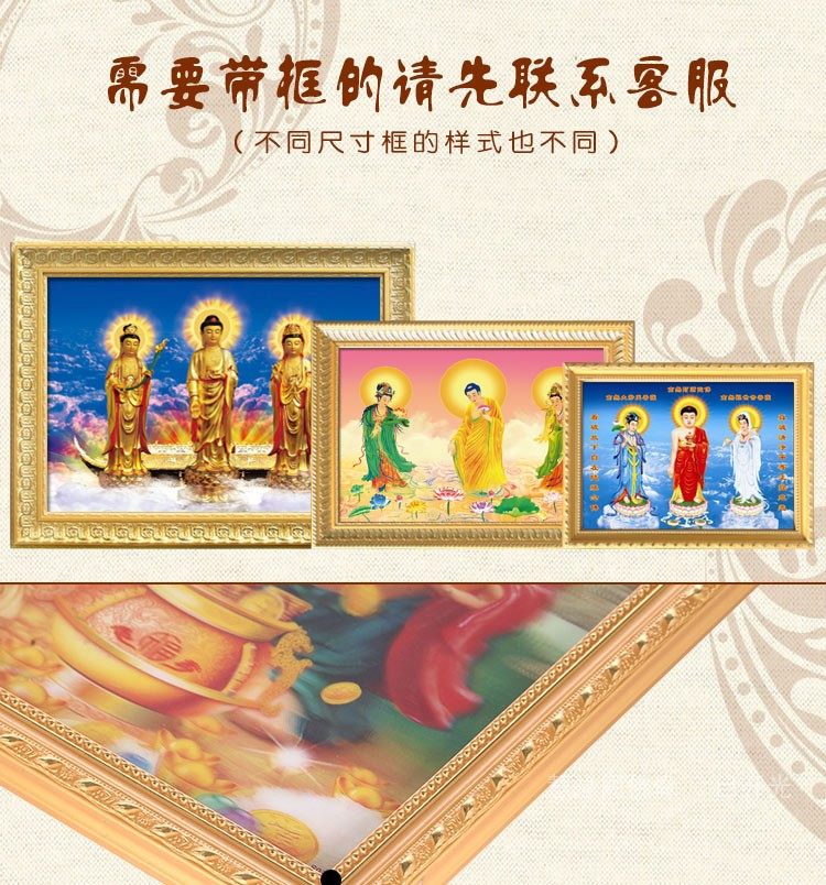 Huiyuan Pavilion Western three-holy Buddha statue portrait Bodhisattva Portrait HD 3D Three-dimensional Buddhist Supplies