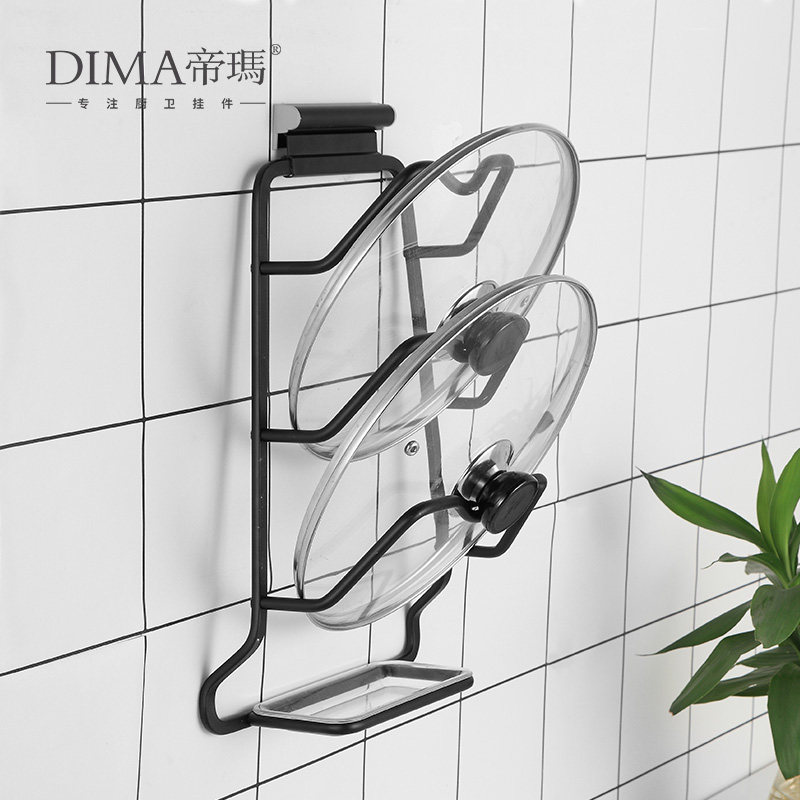 Hole-free kitchen pot cover rack with water wall-mounted household wall-mounted wall-mounted multi-function rack