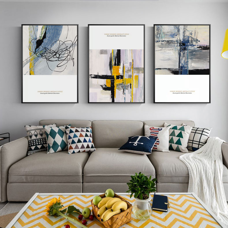 Living Room Decoration Painting Abstract Hung Painting Sofa Background Wall Mural Painting Genguan Modern Brief Bedside Oil Painting Triptych