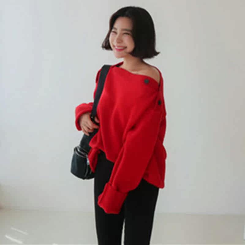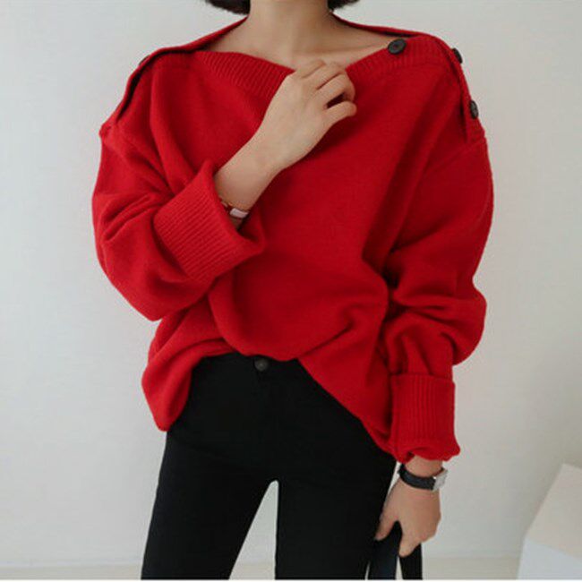 Fall and Winter 2018 new Korean women's clothes loose sleeve sleeve button and knitton ladies tops tide
