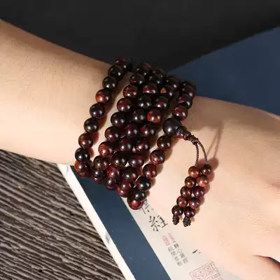 Dalong Hainan Huanghua Pear Old Material Purple Oil Pear 108 0 8 Rosary Beads Red Wood Hand