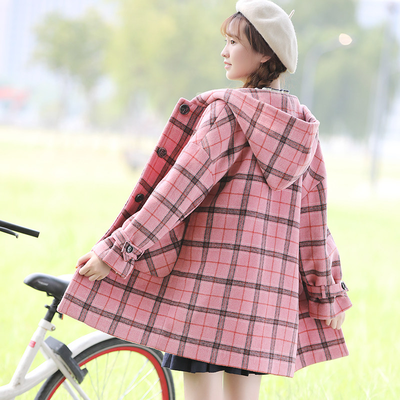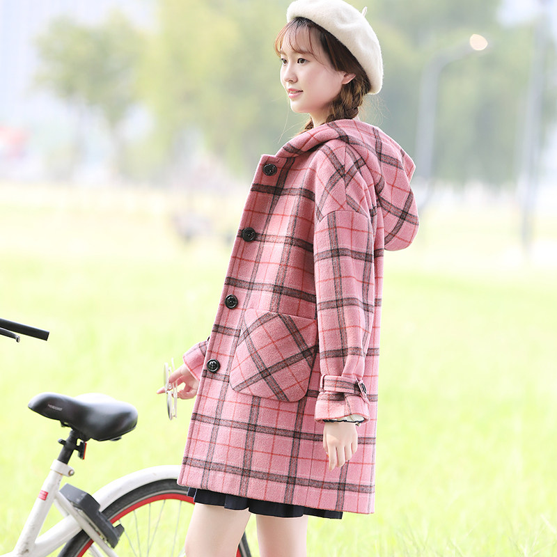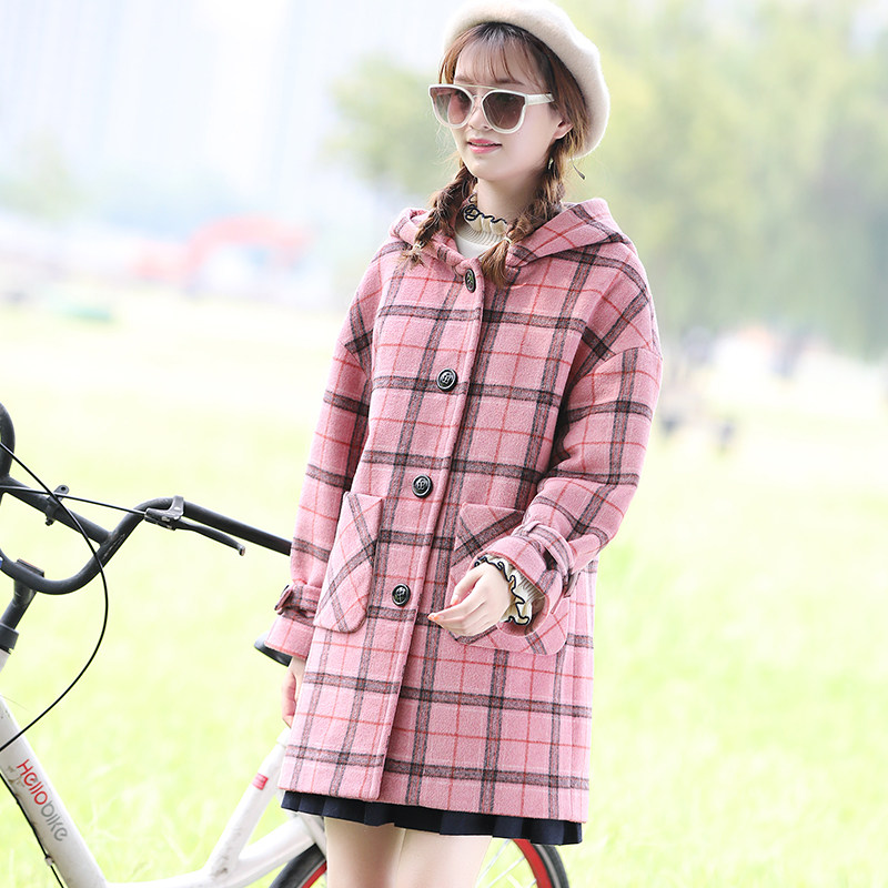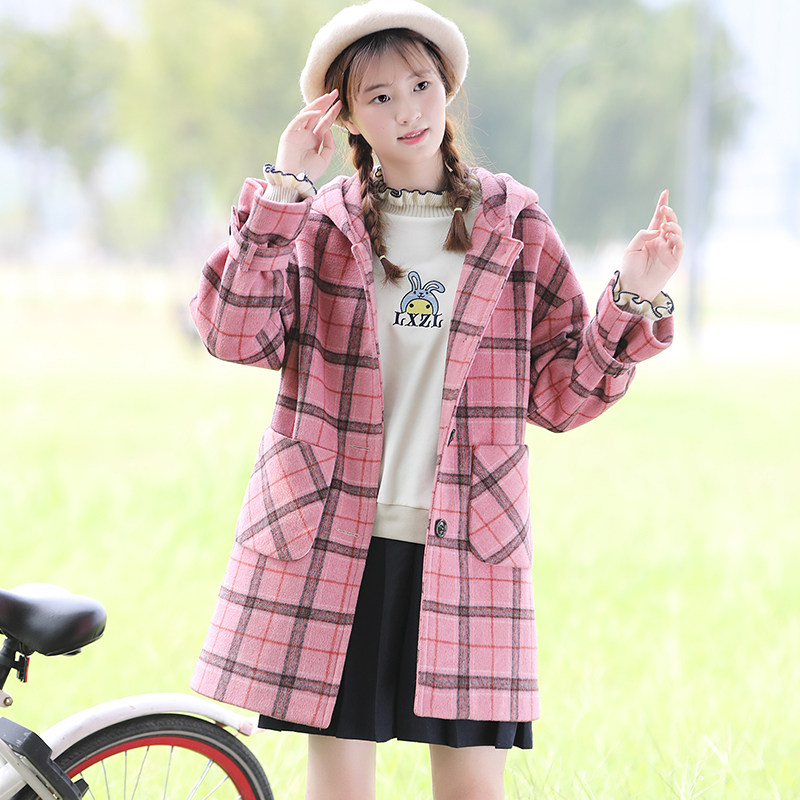Winter thick woolen coat female high school junior high school students winter clothing Korean version of wool plaid coat mid-length