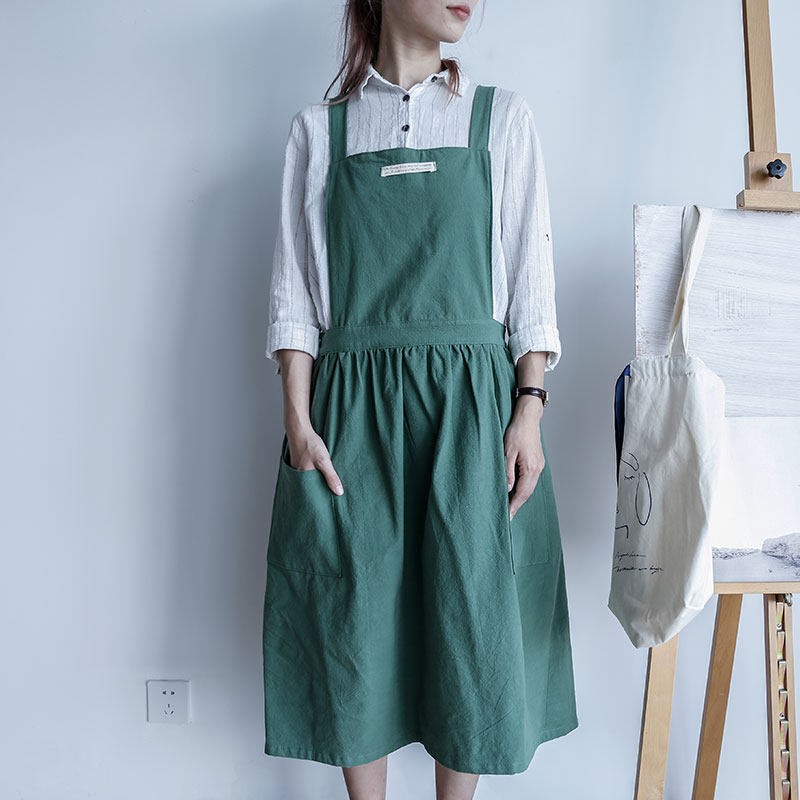 The sleeveless apron is a little less