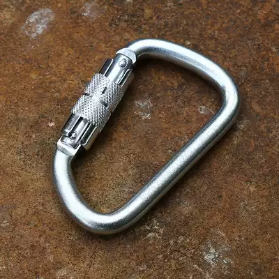 Outdoor mountaineering and climbing automatic screw buckle main lock Downhill ice climbing high carbon steel load-bearing hole exploration safety buckle big cap lock sleeve