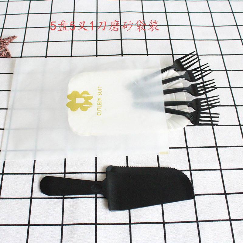 100 sets of paper bags 5 disc 5 fork 1 large knife black 100 cover paper bag 5 disc 5 fork 1 small knife black 100 cover paper bag 5 disc 5 fork 1 large knife transparent color 100 cover paper bag 5 disc 5 fork 1 small knife through