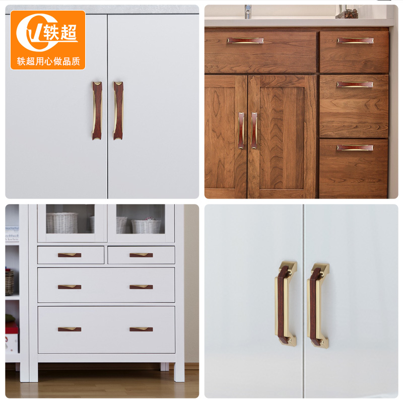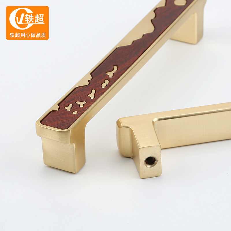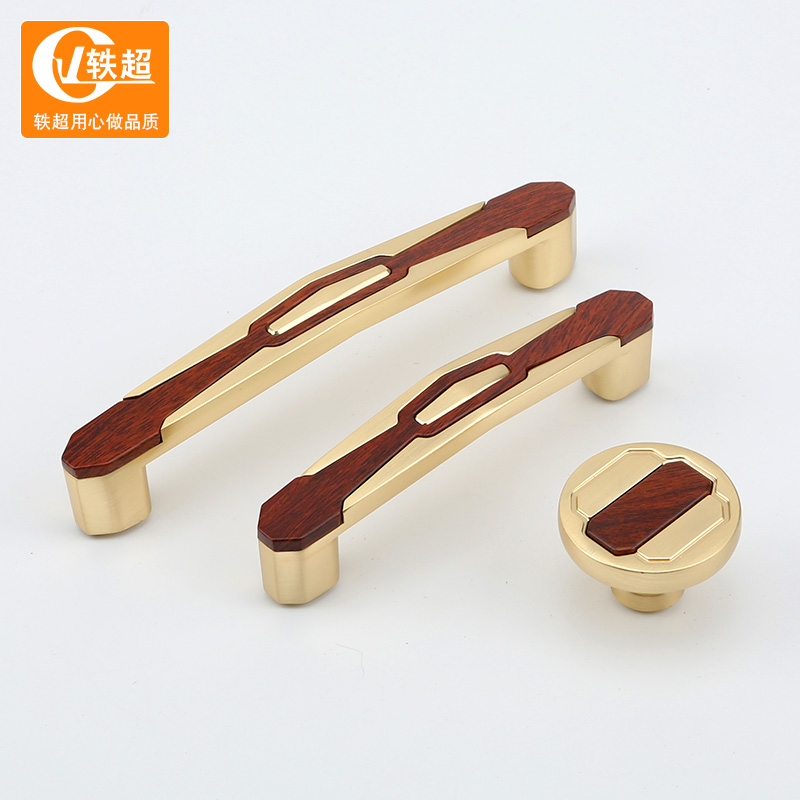 Gold handle modern minimalist wood grain color wardrobe cabinet door handle furniture bookcase light luxury drawer handle