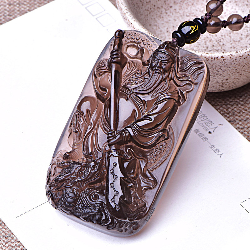 Open ice obsidian Guan Gong pendant men's and women's Wu God of wealth pendant Fortune pendant auspicious gifts