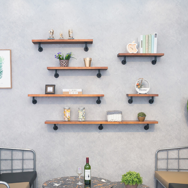 Wall Shelve Water Pipe Wall Wall-mounted Wall Wall Partition Shelf Solid Wood Lined Plate Decorated Shelf Laminate Shelf
