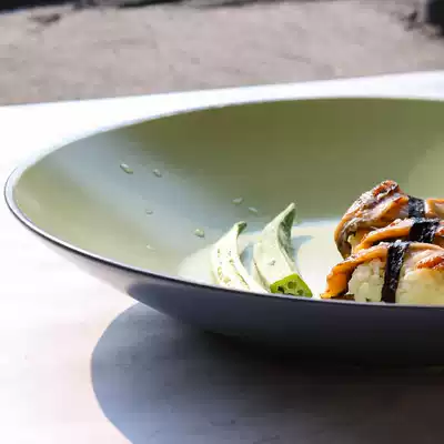 Creative color glaze ceramic large plate Household 12-inch matte fruit salad bowl Pasta plate Western restaurant decorative tableware