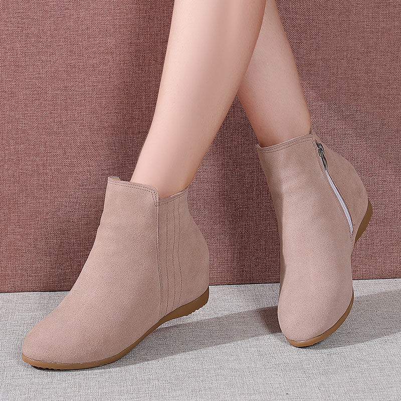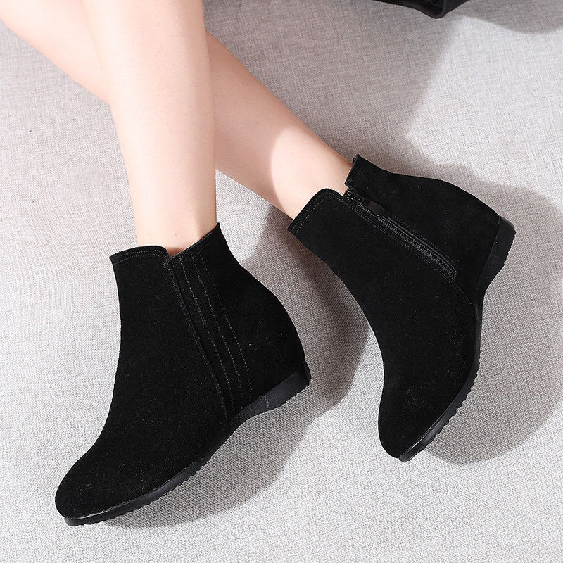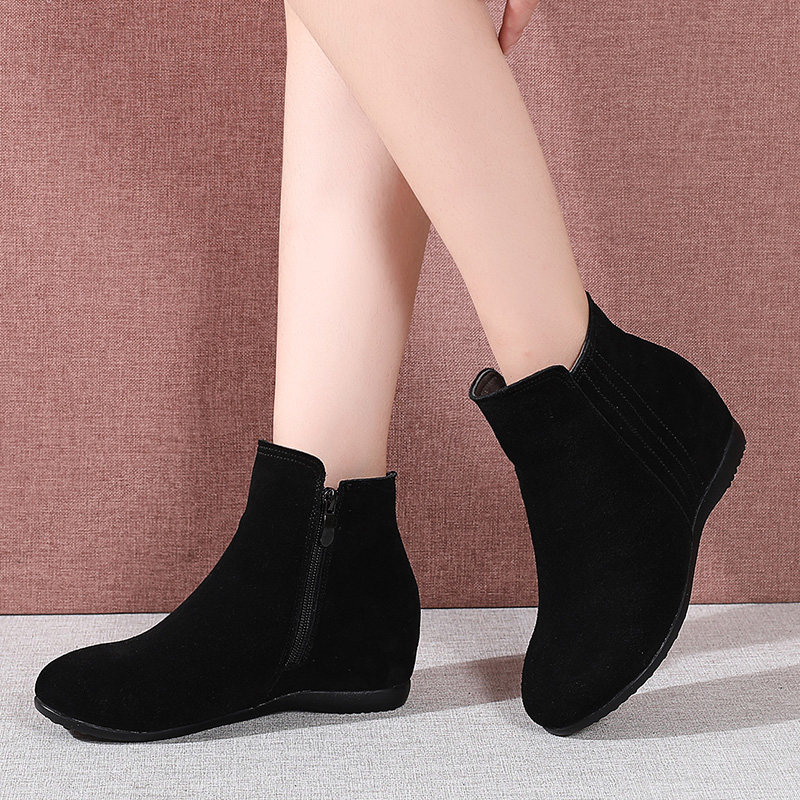 Short boots women's spring autumn 2022 new frosted inner heightening slopes heel winter plus velvet cotton boots flat bottom single shoes women's shoes