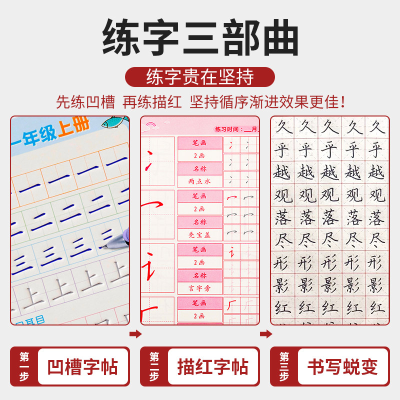 Practicing copybooks for primary school students, first grade strokes, strokes, children, synchronization, 1-6th, new characters, regular script, open letters, Chinese characters, Chinese people's education version, synchronous hard pen, calligraphy, writing, practice every day