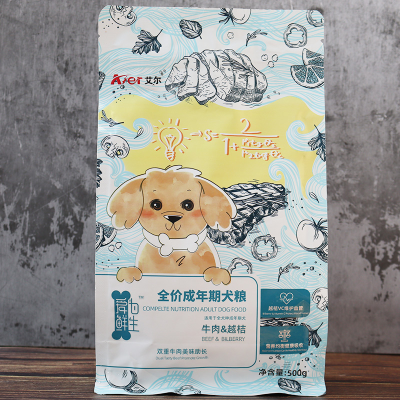 Aier beef bilberry adult dog dog food 500g small and medium-sized dog VIP Teddy Golden Retriever Bichon General Shoot 4 Get 1 Free