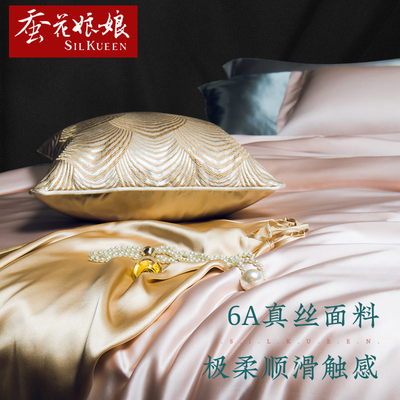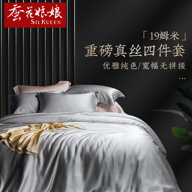 Silkworm flower empress silk four-piece heavy 100 mulberry silk quilt cover Solid color bedding wedding kit