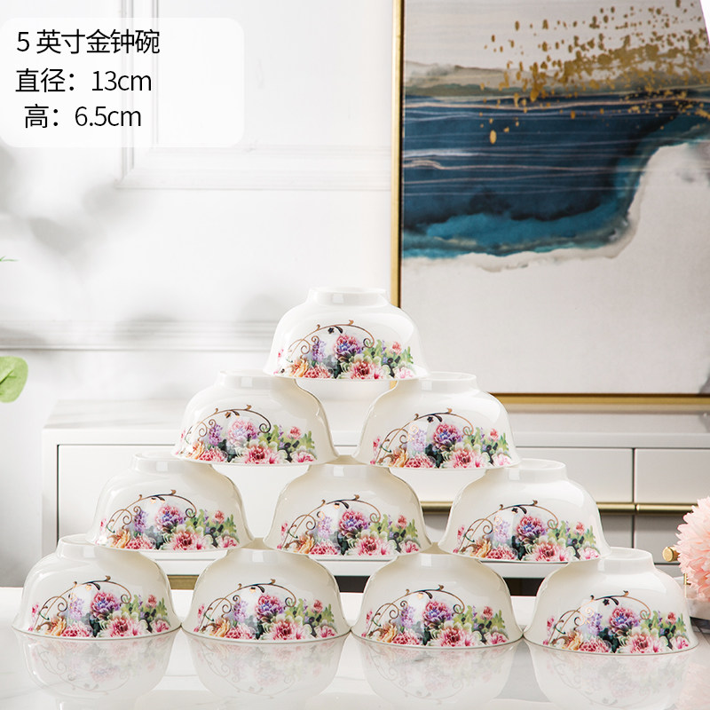 Beautiful Bowls for Eating Good-looking Household Bowls 10 Packs 4 5 Inch Rice Bowls Jingdezhen Ceramic Tableware Set