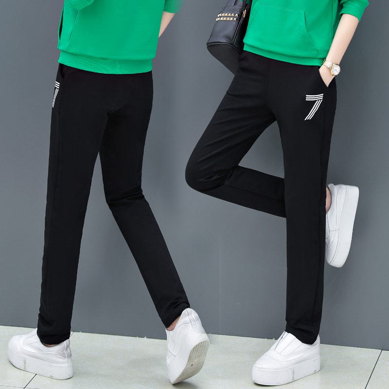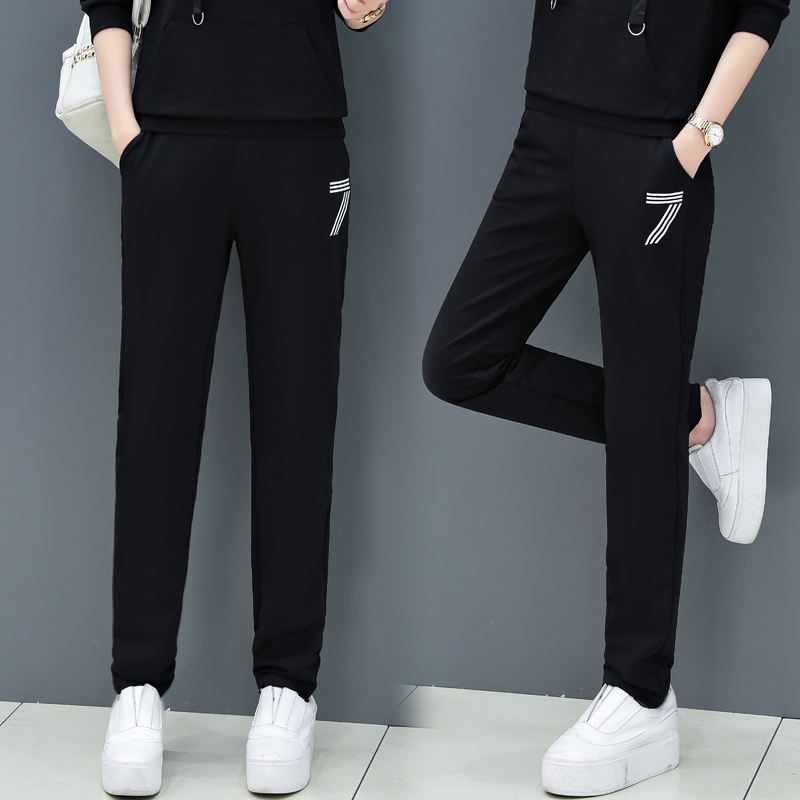 Sports pants female Han edition loose 2022 new spring and autumn casual trousers plus fluff student trousers tide