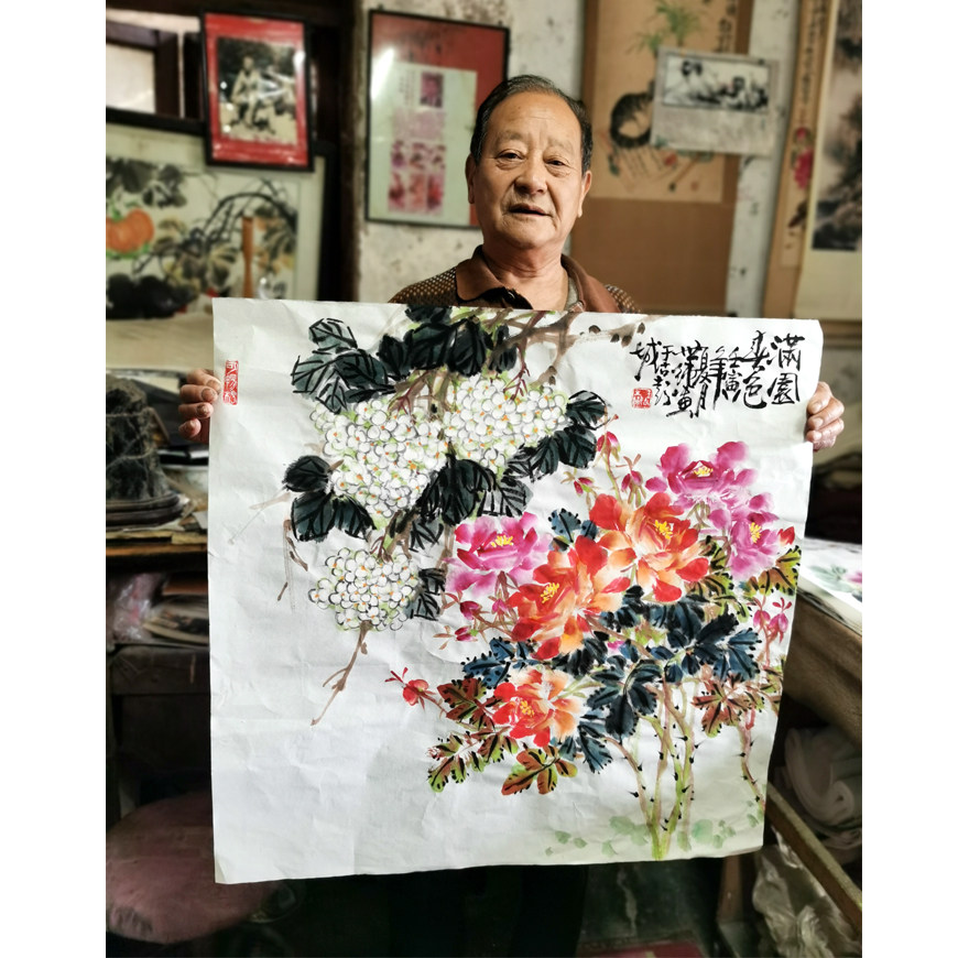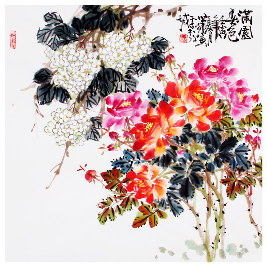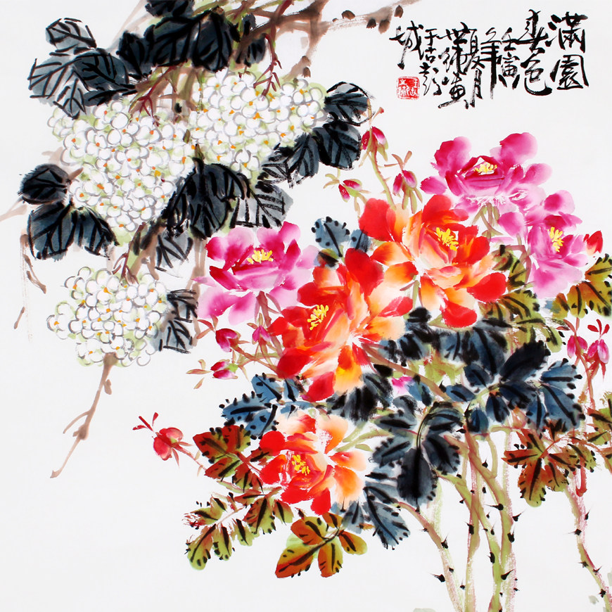 Wang Shipure "Full Garden Spring Color" Famous National Painting Flowers And Birds Real Miracles Decorative collection of calligraphy and painting Baozhen auction with group photo