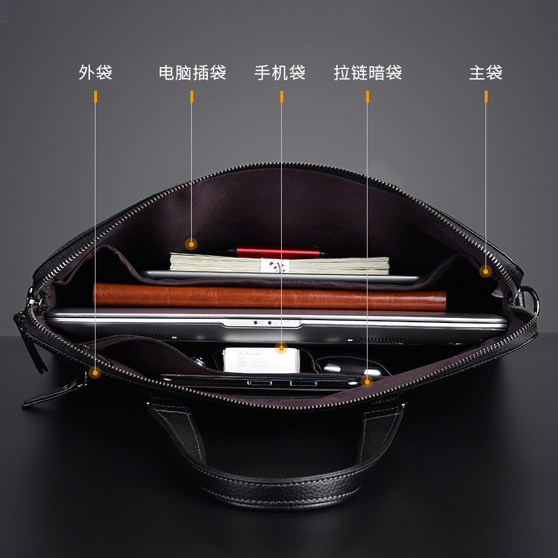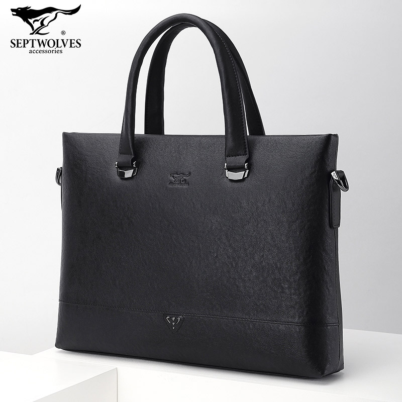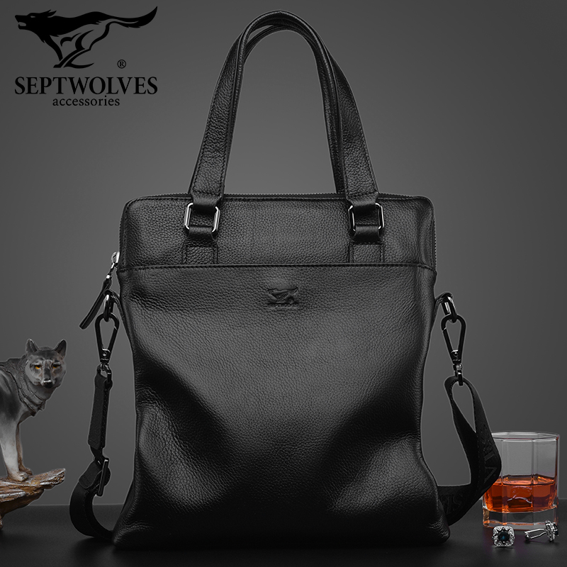 Seven wolves men's handbag 2021 new fashion leather large leather bag capacity soft leather casual business briefcase