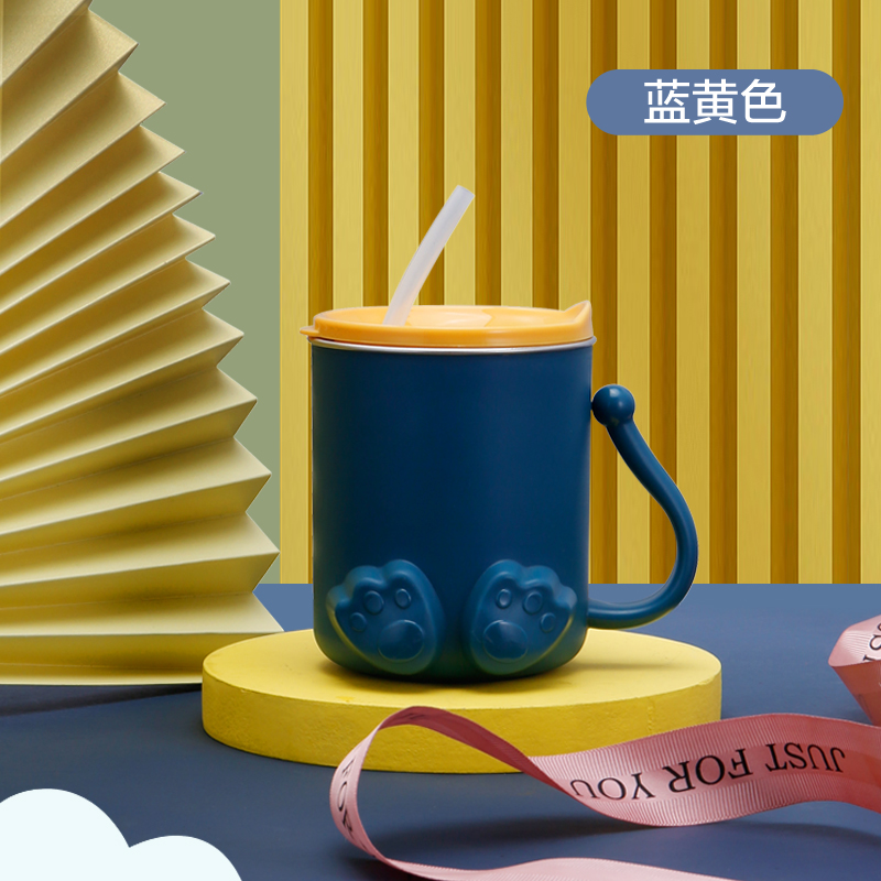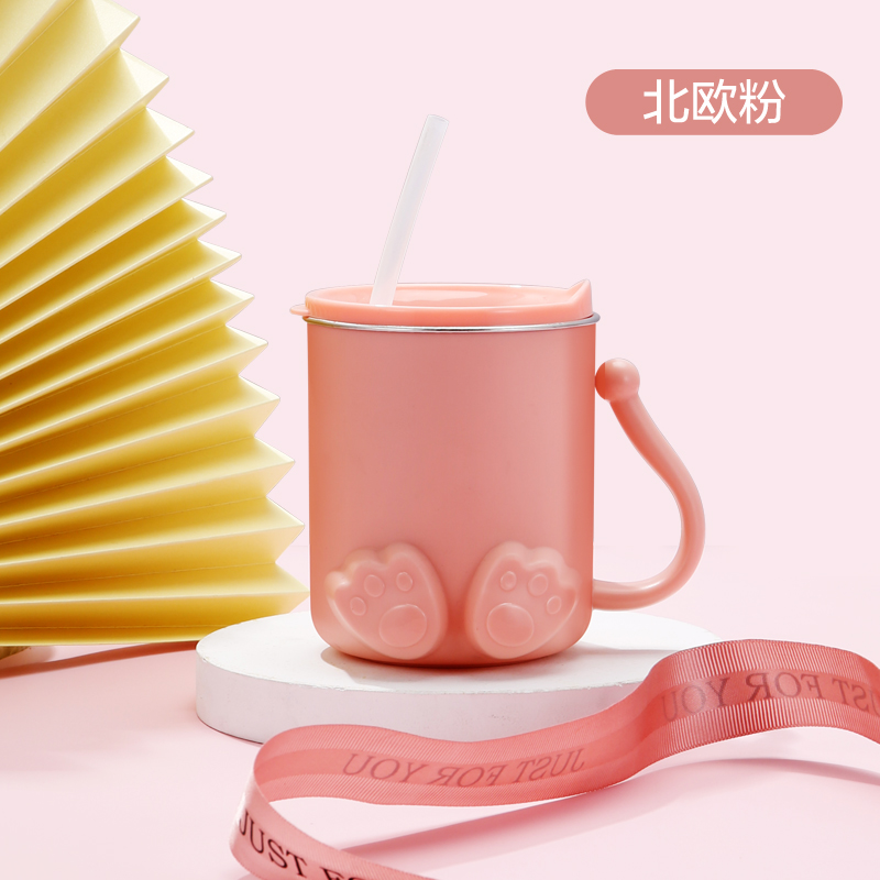 Children's water cup Household with scale drinking water drop-proof stainless steel straight drinking cup Straw cup Baby milk cup