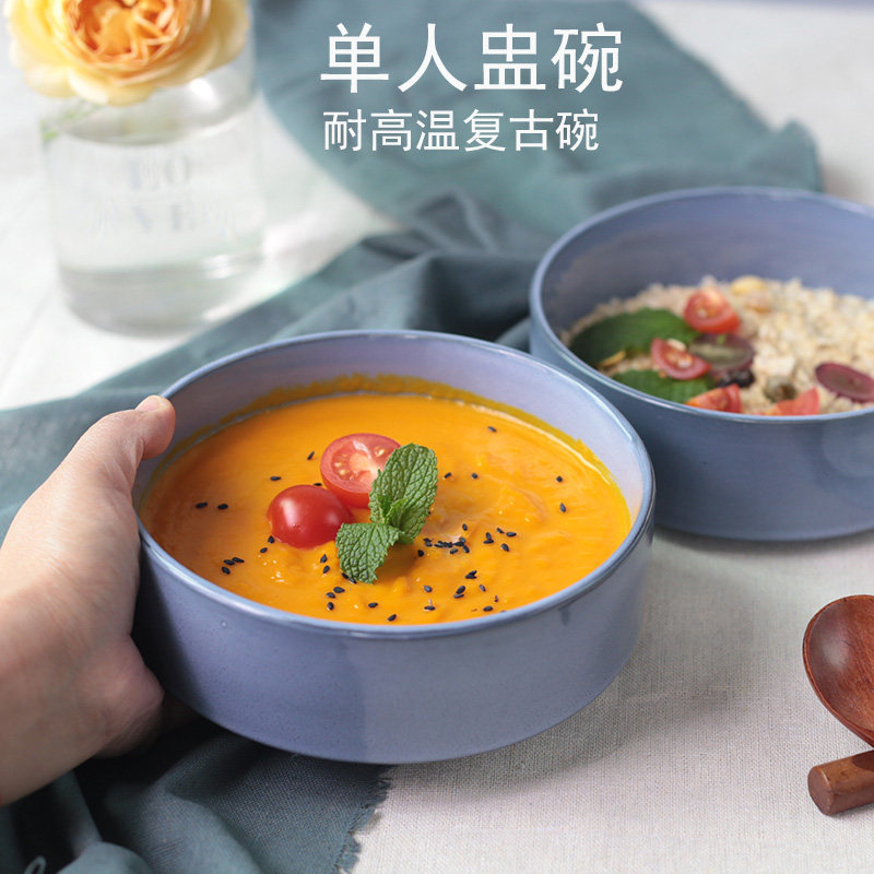 Creative Japanese household ceramic bowl vintage glaze rice bowl Japanese tableware bowl salad bowl ceramic small bowl